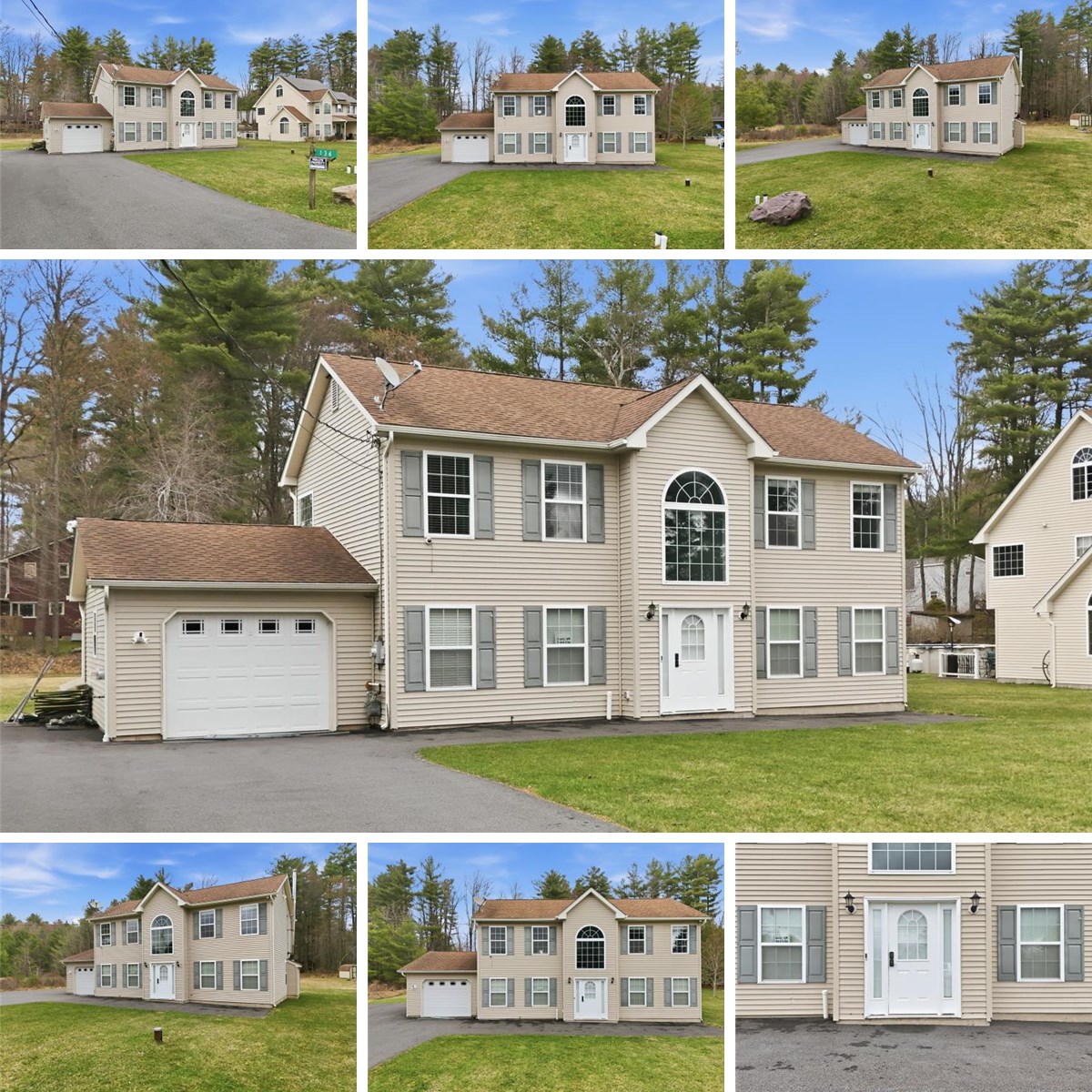 A DRAMATIC TWO STORY FOYER with a CUSTOM CHANDELIER and HANDCRAFTED STAIRCASE featuring GLASS BALUSTRADES and QUARTZ STEPS sets the tone for this FULLY REMODELED 4-BEDROOM, 3-FULL BATH COLONIAL home in the Pocono Mountains. This MOVE IN READY, modern colonial offers high-end finishes throughout and is ideal for buyers seeking UPSCALE POCONO LIVING The main level is bright and open with an elegant, contemporary aesthetic, highlighted by recessed and modern lighting fixtures, CROWN MOLDING, and rich MAHOGANY WOOD FLOORS. The DESIGNER kitchen embraces a clean, minimalistic-luxury design with IMPORTED 24 X 24 CERAMIC GLASS TILE extending from the foyer, stainless steel appliances, sleek PREMIUM CABINETRY, glass tile backsplash, DOUBLE CONVECTION OVEN, 5 BURNER NATURAL GAS COOKTOP, deep stainless sink, and BLACK QUARTZ COUNTERTOPS, perfect for entertaining and everyday living All three full bathrooms offer SPA LIKE LUXURY FINISHES, and each of the four bedrooms are generously sized, making this home ideal as a primary residence, second home, or luxury Pocono retreat. Additional features include a NEW ROOF, THREE STAGE WATER SOFTENER, WOOD BURNING FIREPLACE, 5 NEW MITSUBISHI DUCTLESS SPLIT UNITS, and a HEATED GARAGE with a NEW INSULATED GARAGE DOOR. Situated on a FLAT CLEARED 1/2 ACRE LOT the property offers ample space to create outdoor living, entertaining, or future enhancements. The home is connected to NATURAL GAS AND PUBLIC SEWER, a highly sought-after combination in the Poconos. Conveniently located near MAJOR HIGHWAYS, SHOPPING, and TOP POCONO ATTRACTIONS, this home is a rare opportunity to own a luxury home in the Pocono Mountains with modern upgrades and long-term value. Schedule a private showing and experience modern Pocono luxury firsthand!